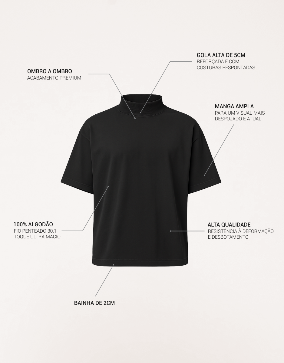 Para quem busca um visual autêntico e cheio de personalidade, a Camiseta Gola Alta Masculina é a escolha ideal. Com design arrojado e influências do streetstyle contemporâneo, essa peça une conforto, atitude e originalidade em cada detalhe. A gola alta adiciona um toque diferenciado ao visual, elevando o nível da composição urbana sem abrir mão da praticidade. Produzida com malha encorpada 100% algodão e de alta qualidade, garante caimento impecável, toque macio e durabilidade.